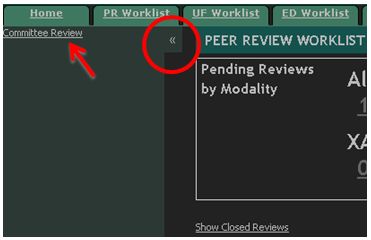 For users granted the privilege to be included for Committee Reviews, a Committee Review link will be available in the left panel on the Peer Review Worklist page or from the Report tab.